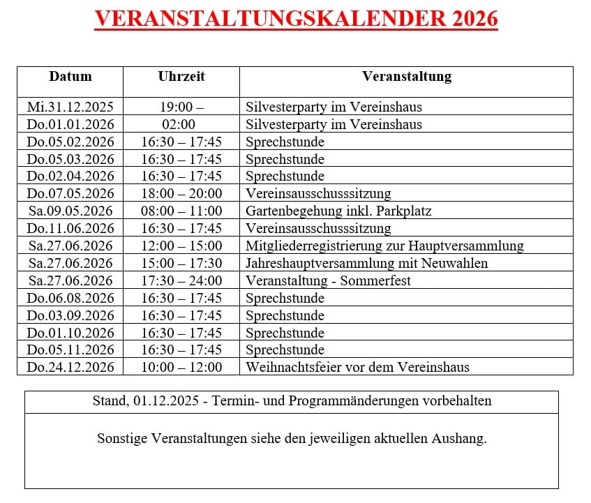 *) Während der Bautätigkeit kann eine Ausnahmegenehmigung bei der Vereinsleitung beantragt werden (ausgenommen Aushub- und Betonarbeiten im Juli und August).