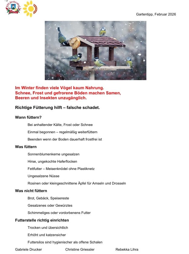Wir werden nun versuchen, einmal pro Monat, passend zur Jahreszeit, einen Tipp zu veröffentlichen.